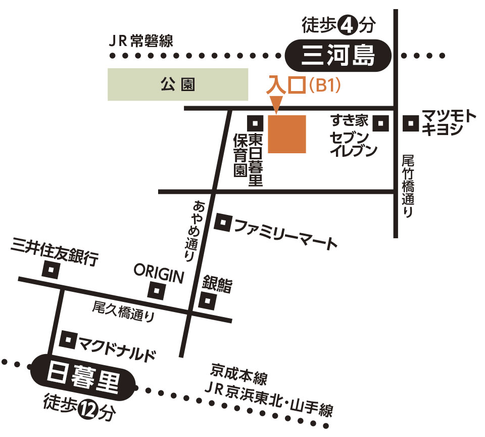 日暮里・西日暮里駅から徒歩10~12分 三河島駅より徒歩3~4分